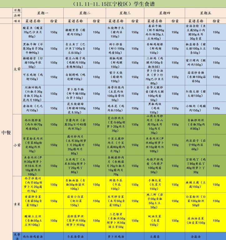江宁校区学生一周菜谱(2024.11.11-2024.11.15)