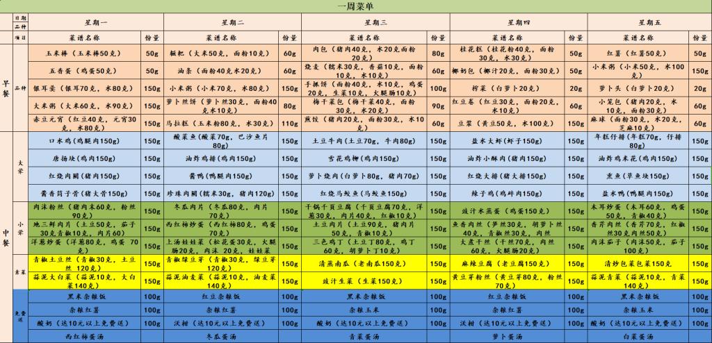 莫愁路校区学生一周菜谱(2025.3.3-2025.3.7)