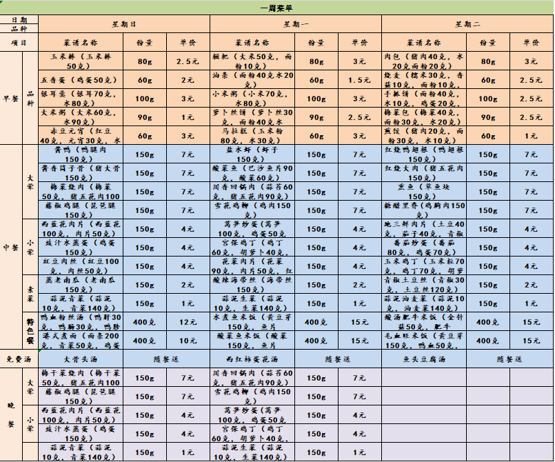莫愁路校区学生一周菜谱(2025.9.28-2025.9.30)
