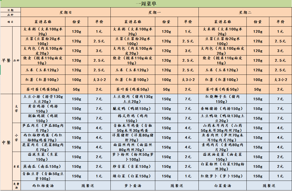 夫子庙校区学生一周菜谱(2025.9.28-2025.9.30)