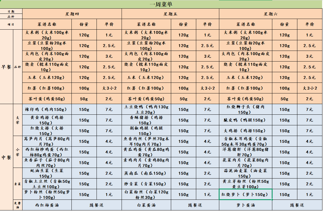夫子庙校区学生一周菜谱(2025.10.9-2025.10.11)