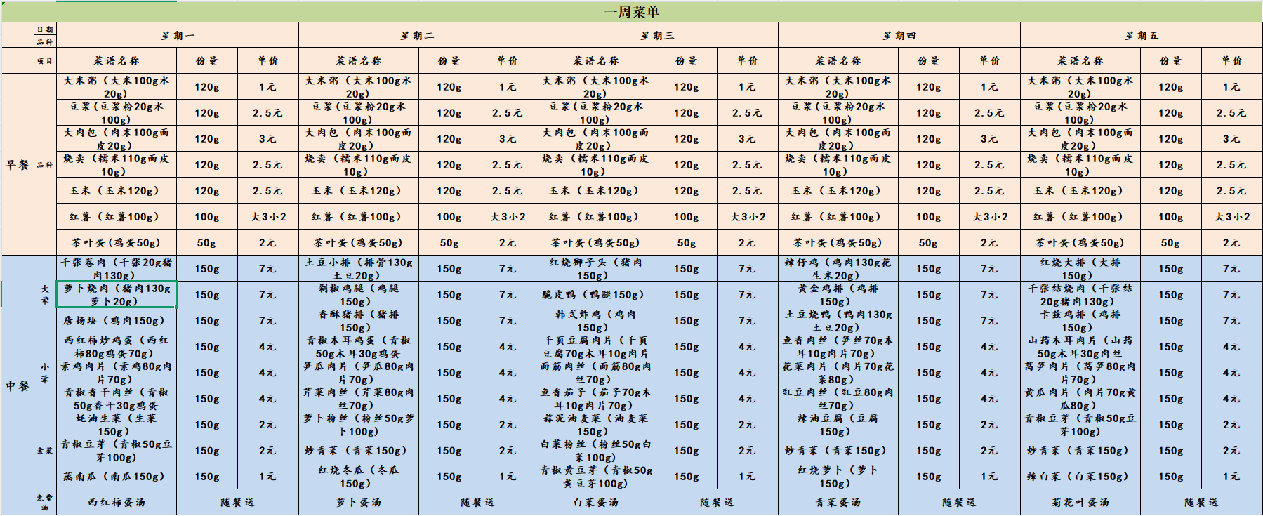 夫子庙校区学生一周菜谱(2025.10.20-2025.10.24)