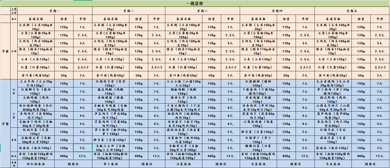 夫子庙校区学生一周菜谱(2025.10.27-2025.10.31)