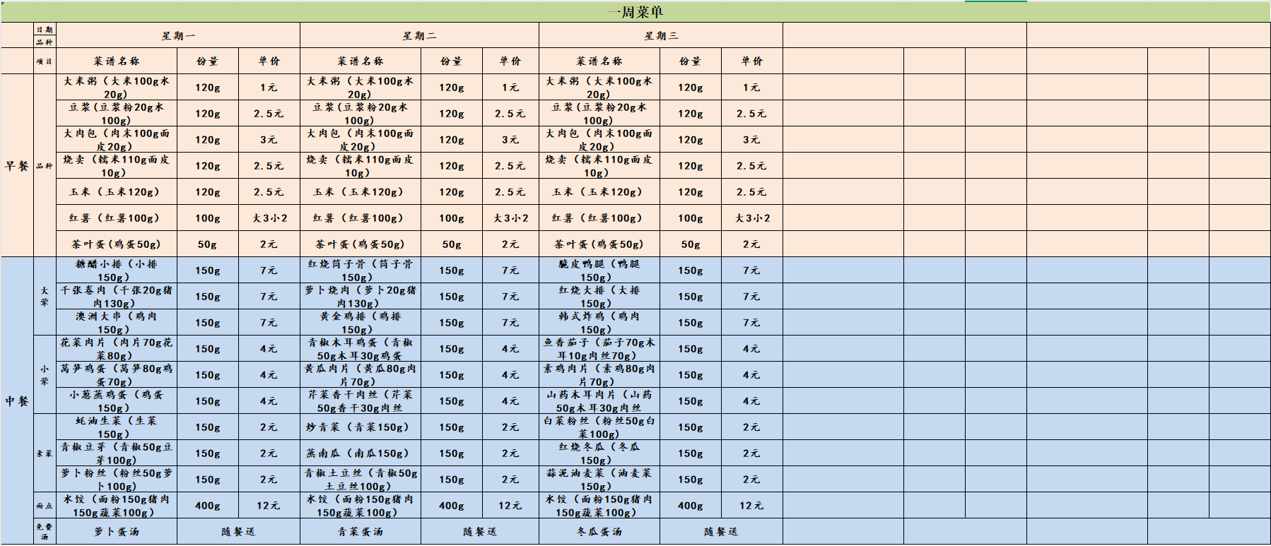 夫子庙校区学生一周菜谱(2025.11.3-2025.11.5)