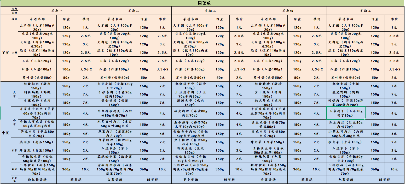 夫子庙校区学生一周菜谱(2025.12.1-2025.12.5)